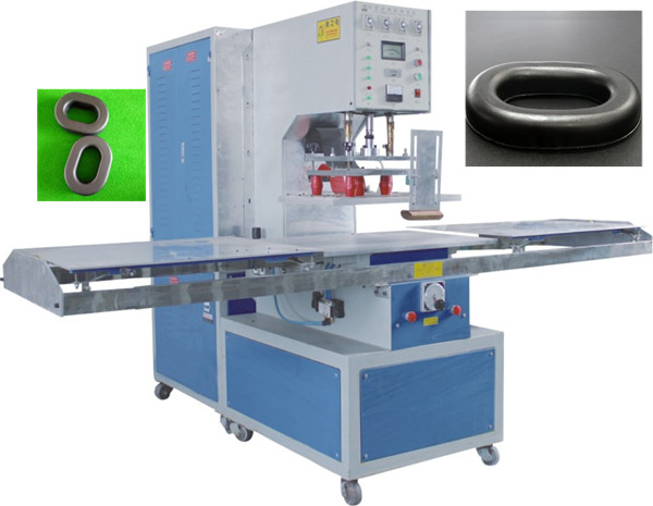 耳套熱合機工作原理:運用高頻電磁波滲透加熱使PVC皮革在上下電磁波電場內瞬間發(fā)生分子極性化現(xiàn)象,配合相應的耳套模具加上一定壓力就可達到熔接目的;焊接速度快并且表面不受任何破壞。