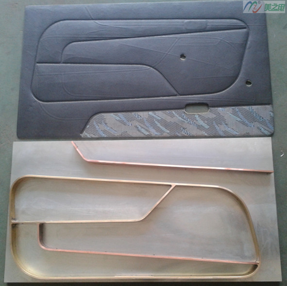 汽車門板模具主要根據(jù)汽車內(nèi)飾門板壓痕形狀要求采用紫銅條經(jīng)過(guò)模具師傅彎至而成然后再安裝在25MM以上鋁板上,再經(jīng)過(guò)CNC加工平整即可完成。