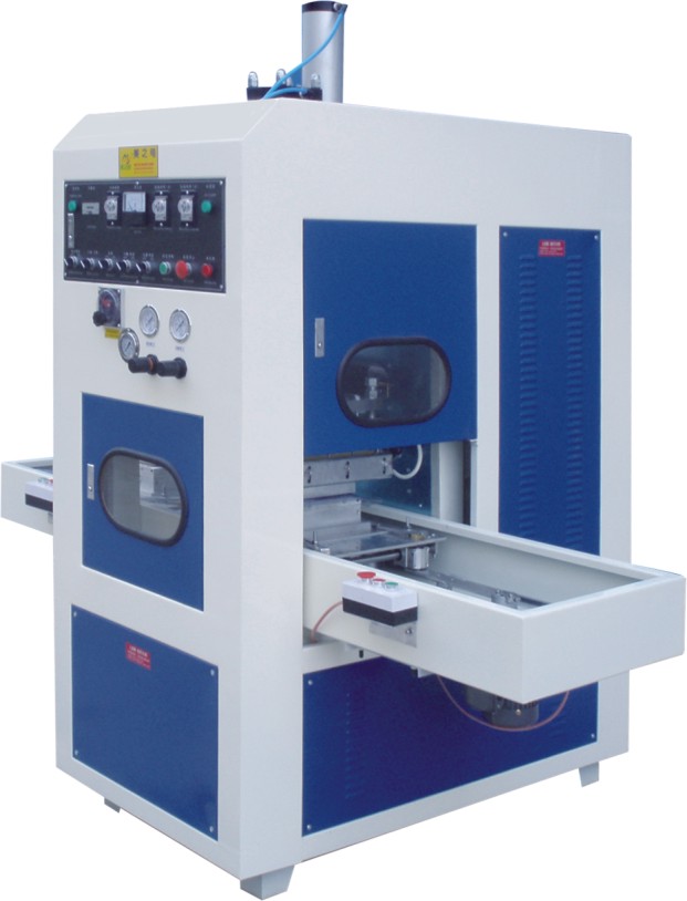 自動(dòng)滑臺(tái)式高周波熔斷機(jī)又叫高周波裁斷機(jī),本設(shè)備分為左右兩個(gè)滑板,人工只需把產(chǎn)品放入到滑板上的高周波治具內(nèi)啟動(dòng)自動(dòng)進(jìn)入狀態(tài),滑板帶動(dòng)模具自動(dòng)把產(chǎn)品運(yùn)送到位后自動(dòng)完成焊接、裁斷等一系列工藝,從而完成一個(gè)完整的工作流程后滑臺(tái)自動(dòng)退出。